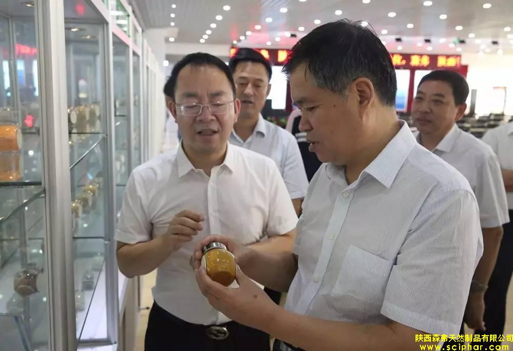 調(diào)研中,趙潤民廳長一行先后來到森弗公司創(chuàng)新研發(fā)中心、互聯(lián)網(wǎng)產(chǎn)品展廳、固體飲料生產(chǎn)中心、功能性食品生產(chǎn)中心、天然提取物生產(chǎn)中心,詳細了解企業(yè)的研發(fā)、生產(chǎn)、銷售等情況。趙潤民說,陜西森弗作為我省第一大植物提取物外貿(mào)進出口企業(yè),為全省植提產(chǎn)業(yè)的發(fā)展起到了引領(lǐng)示范作用,為全省外貿(mào)進出口做出了積極貢獻。希望森弗公司繼續(xù)發(fā)揮在大健康產(chǎn)業(yè)、電子商務(wù)、外貿(mào)進出口等方面的優(yōu)勢,帶動全省植提行業(yè)和電商產(chǎn)業(yè)取得更大的發(fā)展,為全省商務(wù)工作實現(xiàn)追趕超越做出新的更大的貢獻。