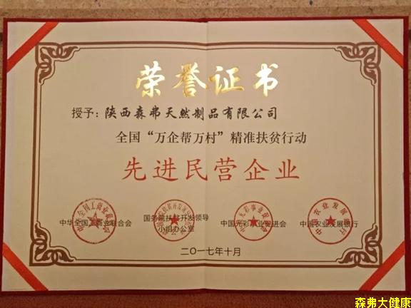 10 de octubre de los nacionales "000 empresas para ayudar a diez mil aldeas" de precisión pobreza Action Forum, celebrada en Beijing. El vicepresidente de la CCPPCh Wang Qin-min, el Presidente de la Federación Nacional, Viceministro del Departamento Central del Frente Unido de trabajo, el secretario del partido nacional de la federación, el vicepresidente Ejecutivo, China Guangcai Asociación Xu Lejiang, vicepresidente de la Federación Nacional, vicepresidente de China, Guangcai se Xie Jingrong, la reducción de la pobreza del Consejo de Estado El subdirector Hong Tianyun y otros líderes asistieron al foro. El evento, en el reconocimiento de un grupo surgido en las "000 empresas para ayudar a diez mil pueblos" campa?a avanzada la empresa privada. Shaanxi Sciphar Natural Products Co., Ltd. fue galardonado con el " '000 empresas para ayudar a Ten Thousand Villages' acción contra la pobreza precisa avanzado la empresa privada" título honorario. Federación Nacional pidió a la empresa privada debe ser elogiado aprendizaje corporativo, motivar y animar a más empresas privadas a participar en las acciones precisas para aliviar la pobreza de usar el poder del ejemplo.