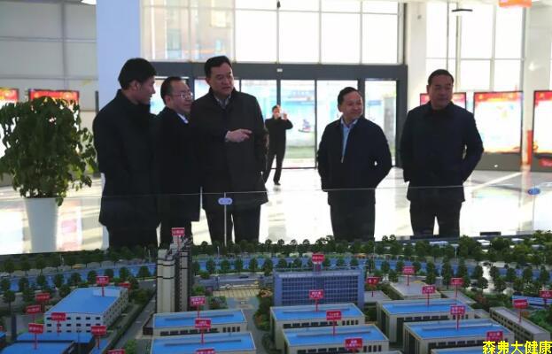 在森弗健康養(yǎng)生產(chǎn)業(yè)園沙盤前,陜西森弗集團(tuán)董事長金新康向各位領(lǐng)導(dǎo)介紹了產(chǎn)業(yè)園建設(shè)、規(guī)劃情況。